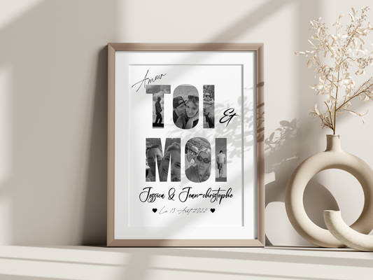 Faites créer votre affiche à partir de vos prénoms, dates ou lieux ! Une création sur mesure, imaginée et imprimée dans le Sud.