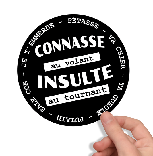 Sticker humour voiture – Connasse au volant insulte au tournant – Autocollant drôle