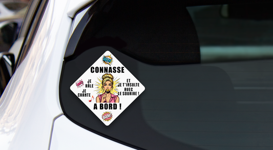 Sticker humour voiture – Connasse à bord – Autocollant Pop Art femme drôle