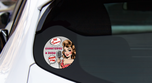 Sticker humour voiture – Chanteuse à bord – Autocollant Pop Art femme rétro