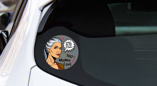 Sticker humour Mamie Cool – 100 % grand-mère stylée – Autocollant Pop Art femme rétro