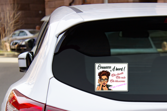 Adesivo umoristico “Cagna a bordo – Canta, brontola, suona il clacson” – Adesivo Pop Art di una donna ribelle, realizzato in Francia