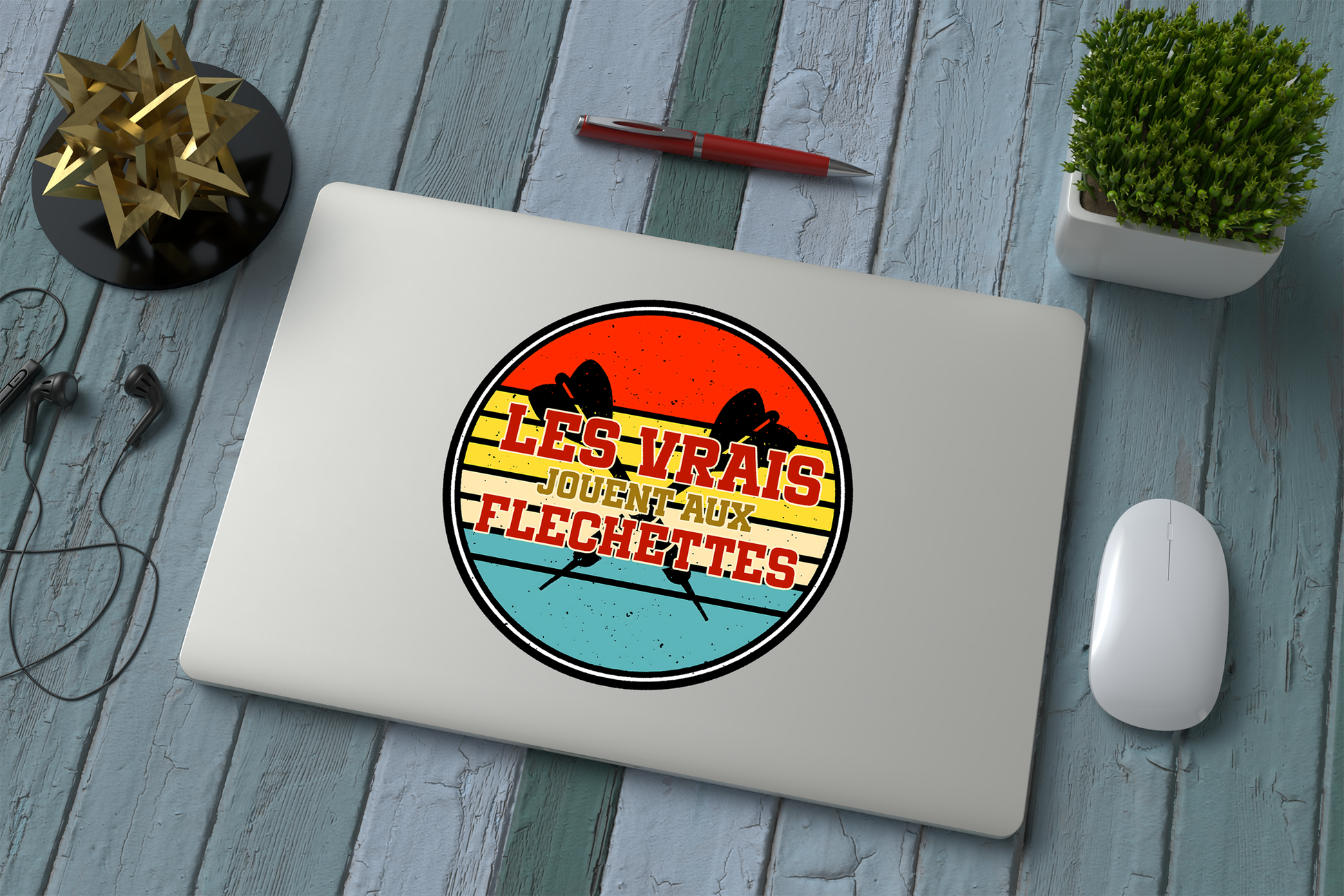 Ce sticker “Les vrais jouent aux fléchettes” est fait pour les passionnés de précision (et d’apéro entre deux manches 🍺).