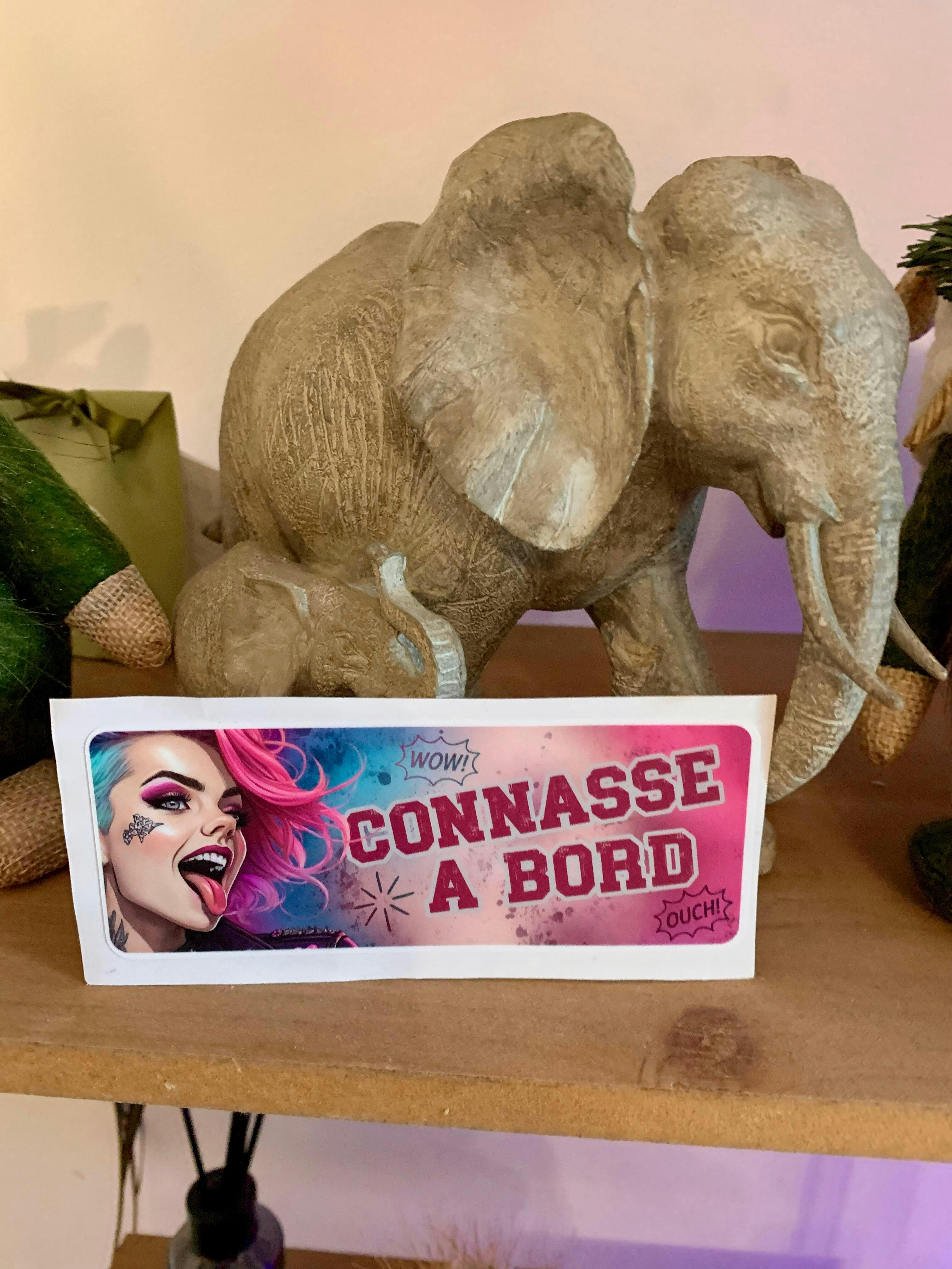 sticker humour voiture, sticker femme rebelle, autocollant connasse à bord, sticker pop art, sticker fun, sticker rose, sticker drôle, autocollant voiture humour, sticker original, sticker vinyle résistant, made in france, sticker insolent, stickers paradise